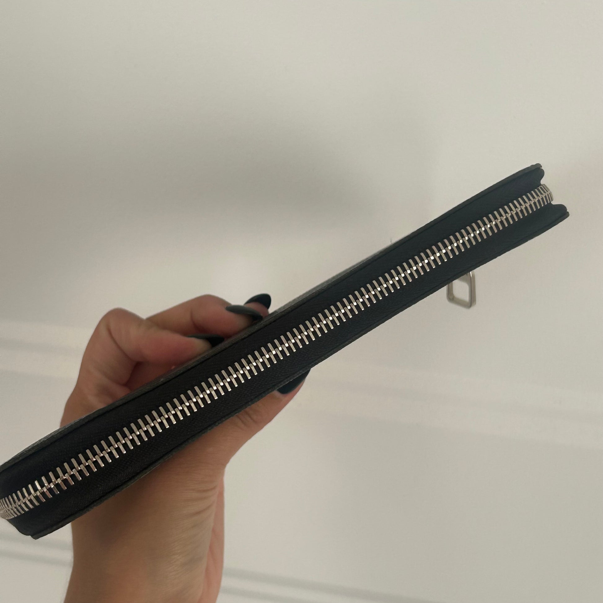 Long portefeuille unisexe en excellente condition (9/10). Présente de légers signes d’usures et à les initiales de l’acheteur à l’intérieur. (N.Y) Beaucoup d’emplacements pour cartes. Les fermetures éclairs fonctionnent parfaitement. À découvrir!