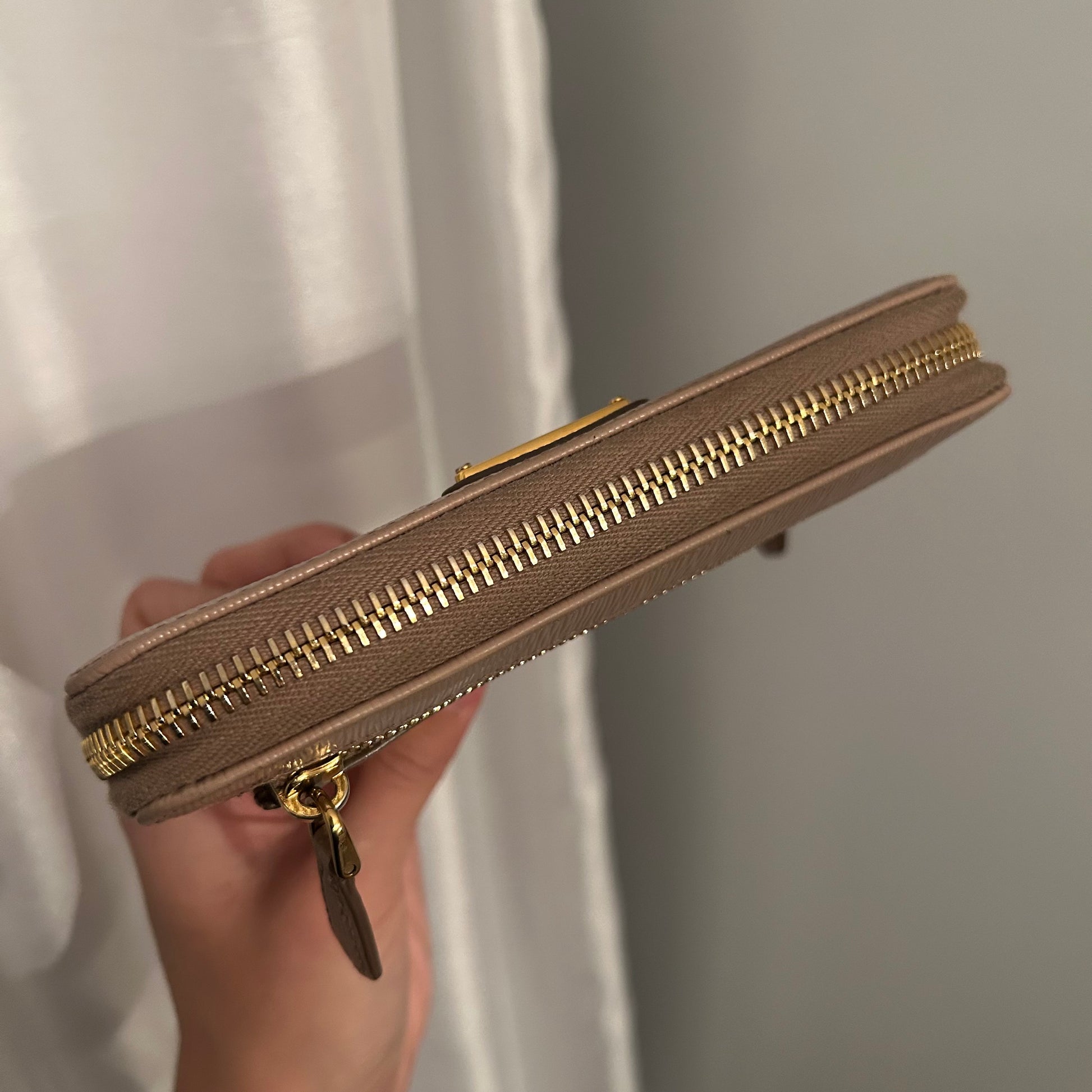 Portefeuille en excellente condition. 9.5/10 Interieur comporte des signes d’usure mineur. 8.5/10 Les fermetures éclairs glissent très bien. Plusieurs emplacements pour cartes et compartiment pour monnaie.